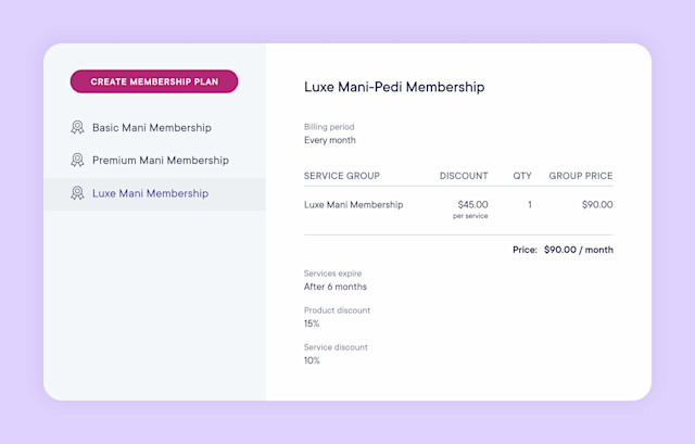 When creating your membership, it is vital to ensure your salon or spa software supports this feature. Otherwise, you could be manually managing monthly payments, keeping up with service redemption, applying member discounts, and so much more.