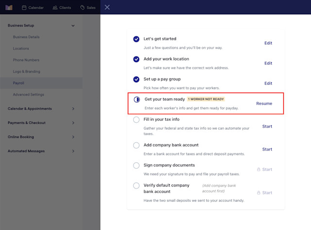 Your first payday is the first date you’d like to begin paying your workers through Mangomint. Keep in mind this date is not final—this date is simply for the Mangomint team so we can help you stay on track and complete your onboarding in time for your first payday.