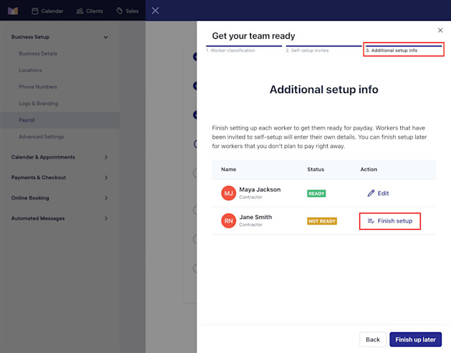 In the Get your team ready section, set up your workers for payroll. If you need help determining a worker’s classification, please consult an accountant.