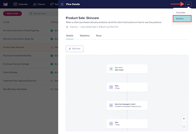 You can edit a flow to add new steps, adjust the timing of messages, and more.