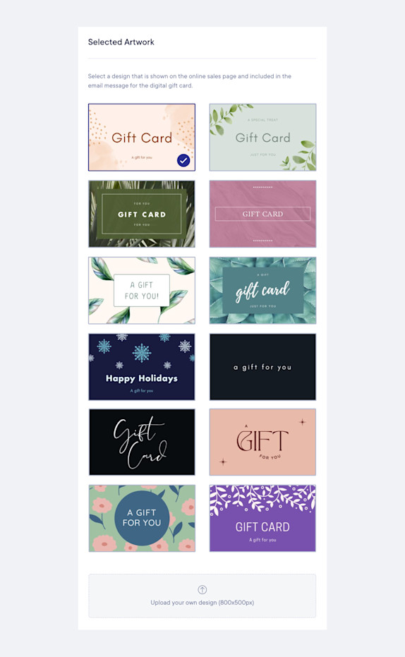 How do I customize my digital gift card artwork?