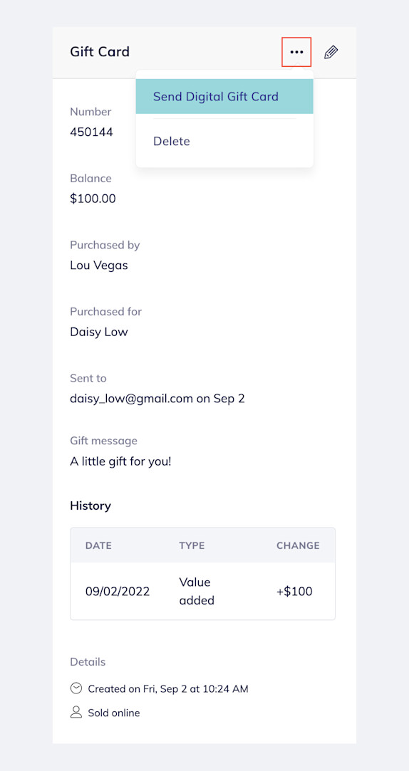 How do I send a digital copy of a gift card?