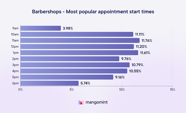 All other potential start times combined account for less than 5% of barbershop bookings.