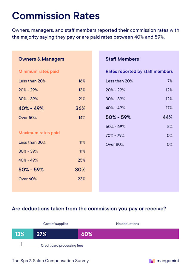 We surveyed hundreds of owners, managers, and staff across the United States and Canada to determine the most common compensation models, how payments and tips are handled, which commission structures are the most popular, and much more.