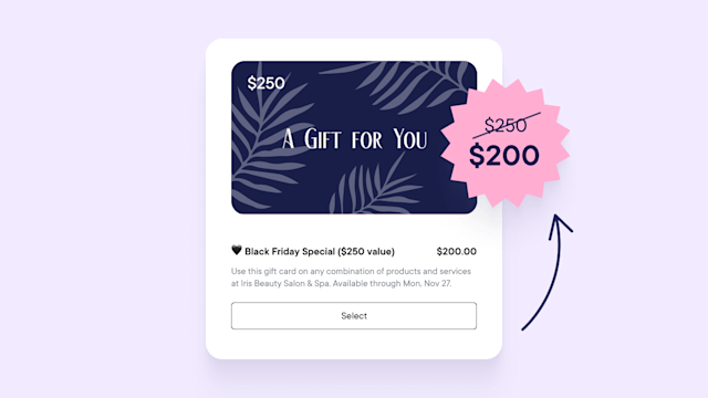 For instance, when a gift card is on sale, clients are more likely to buy one for friends and family. These gifts will introduce your business to new (and potentially recurring) clients in their network. You can find more incredible gift card promotion ideas for your spa here.