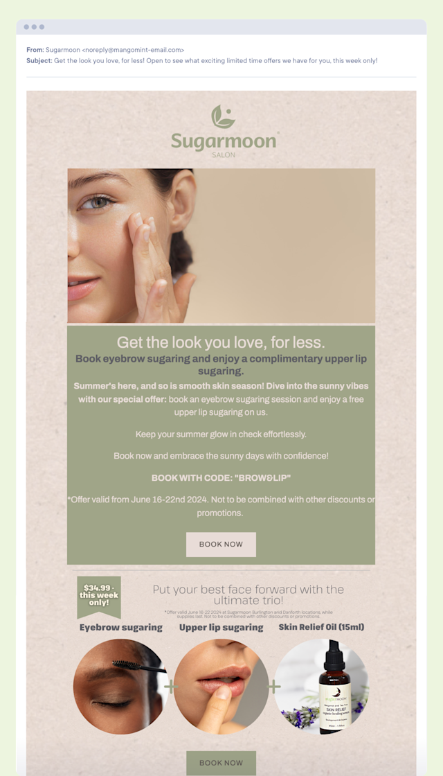 With dozens of email templates designed for salons and spas, Paola can spin up a campaign quickly. She uses a targeted approach in her marketing to ensure every email is meaningful to her clients. Using the client information collected and stored in Mangomint, she can create custom audiences based on memberships, appointment dates, services received, and more.