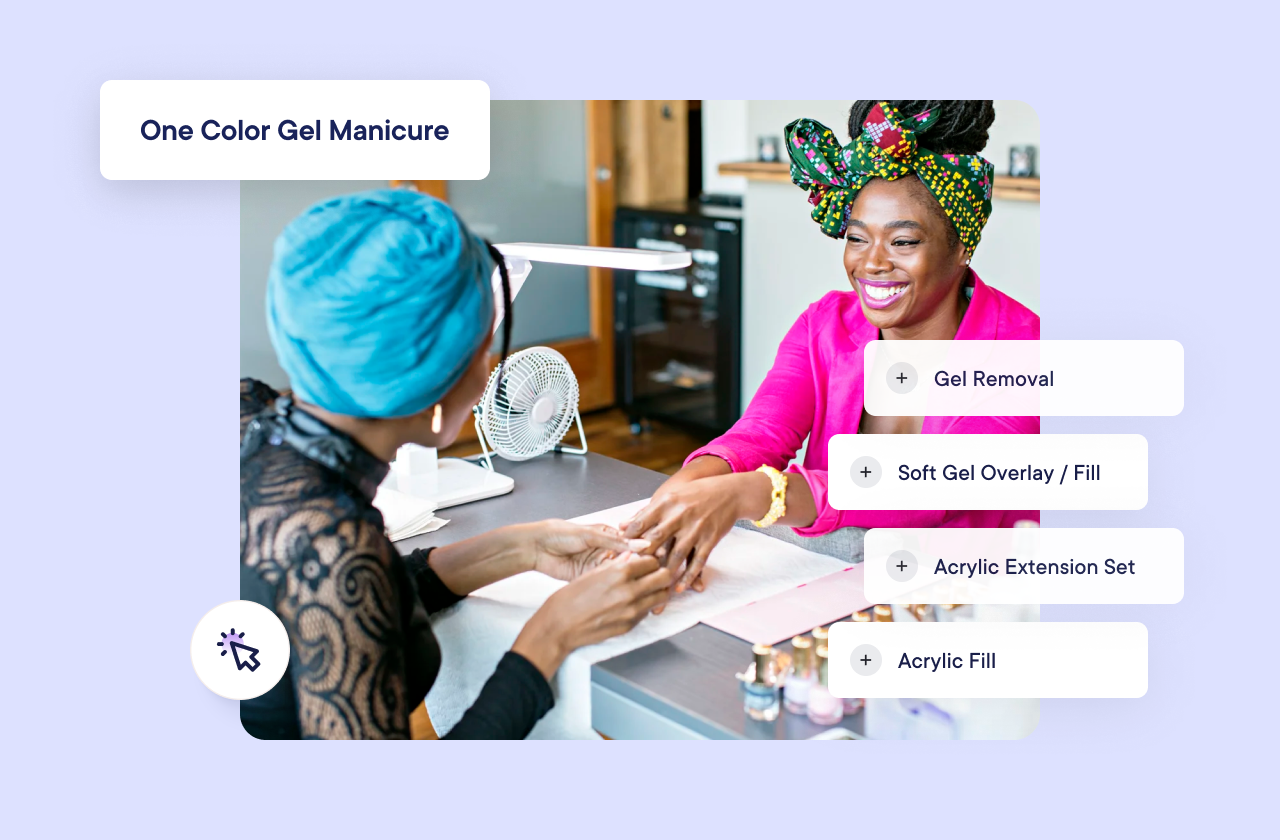 Mangomint’s service customizations let Ada and her team capture that detail during the booking process. Does the client need a gel removal? Do they want extensions? Are they booking a multi-hour hand-painted appointment? All of it gets answered upfront, in one booking flow.