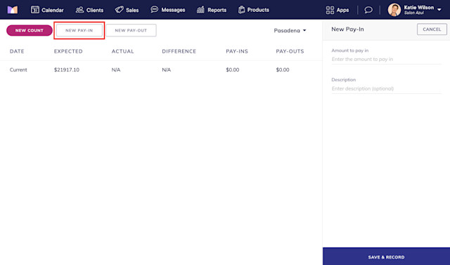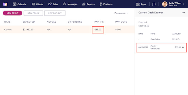 Pay-ins allow you to add money to the cash drawer, and pay-outs allow you to take money out of the cash drawer. For example, you may need to take out cash to buy office supplies. Afterward, if you have change left, you may want to add the change back to the cash drawer.
