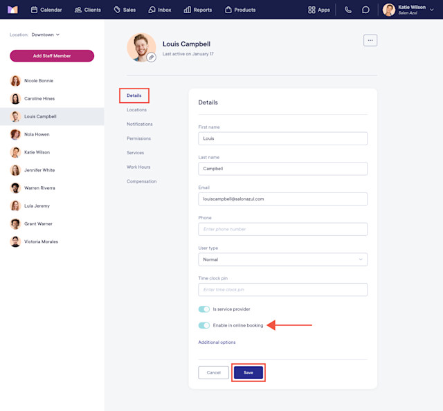 Learn how you can also enable or disable specific services in online booking for a staff member.