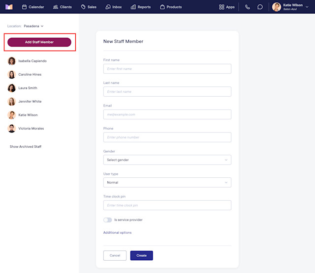 To add a staff member, open the Staff Members app and select Add Staff Member.