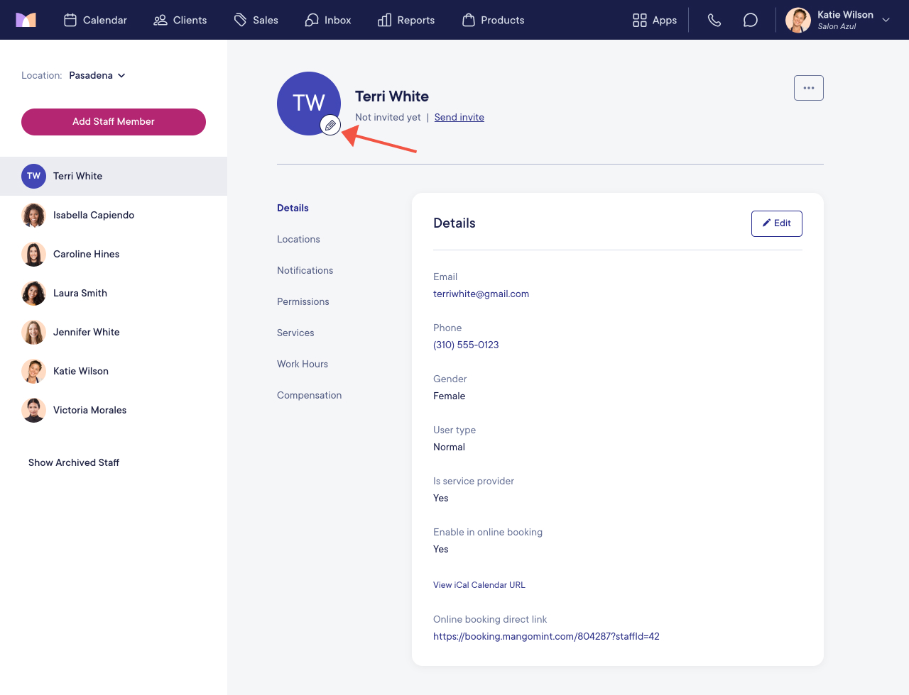 After creating a staff member, you can add their profile photo by selecting the pencil icon next to their avatar.