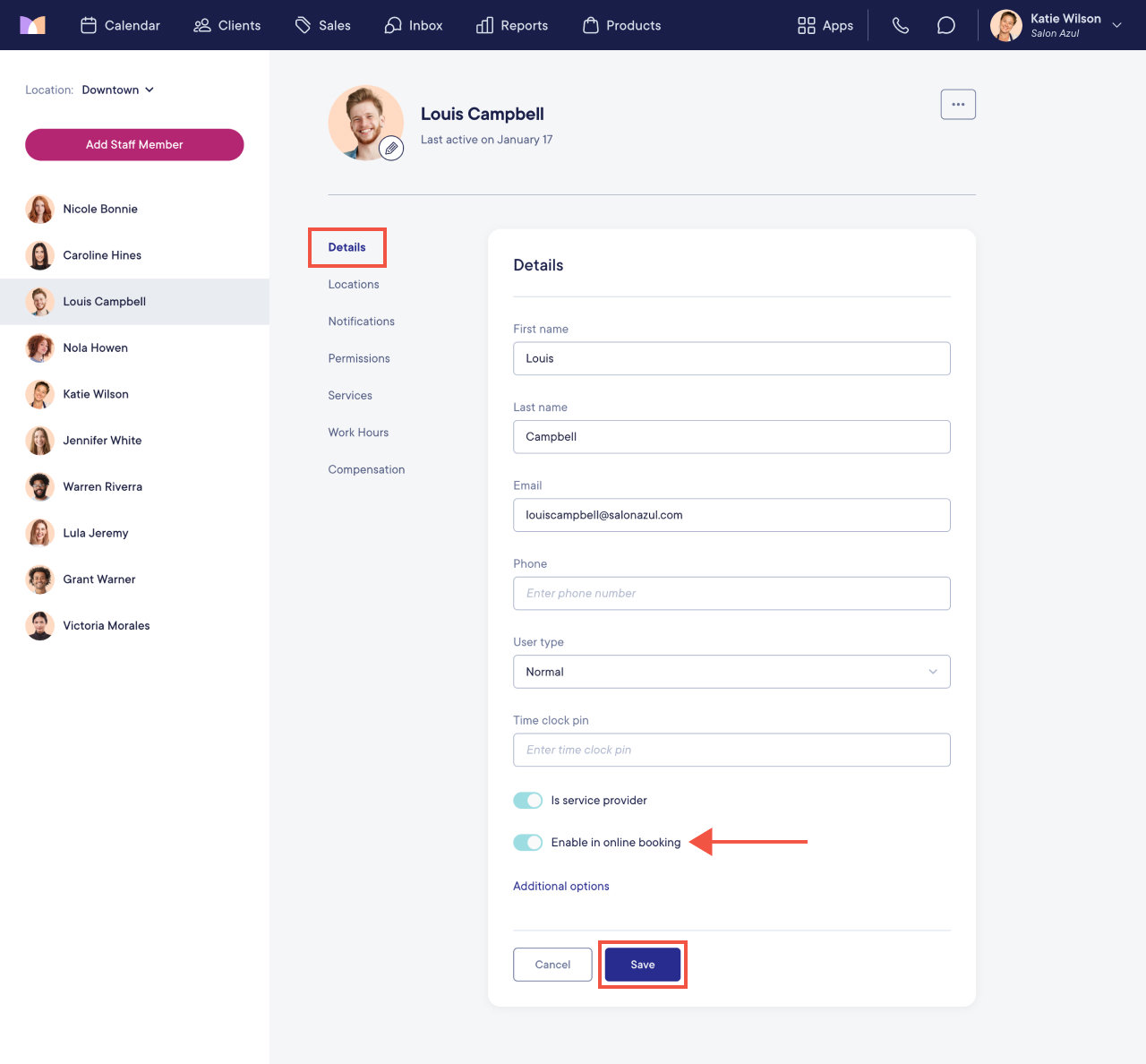 Learn how you can also enable or disable specific services in online booking for a staff member.