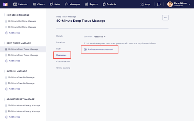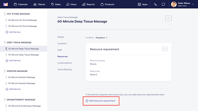 Once a resource requirement is added to a service, the system will automatically check during the booking process to see if the resource requirement can be fulfilled.