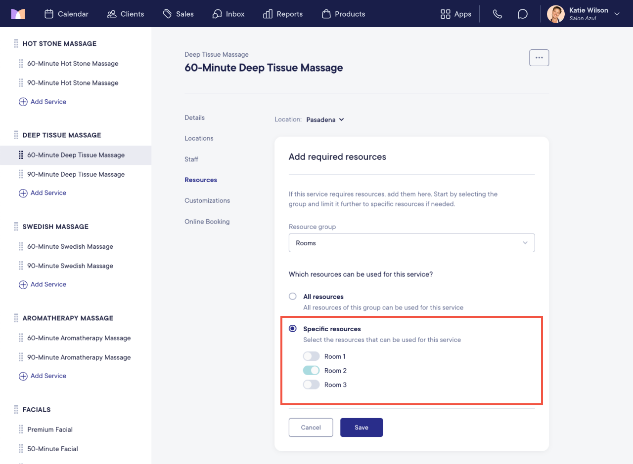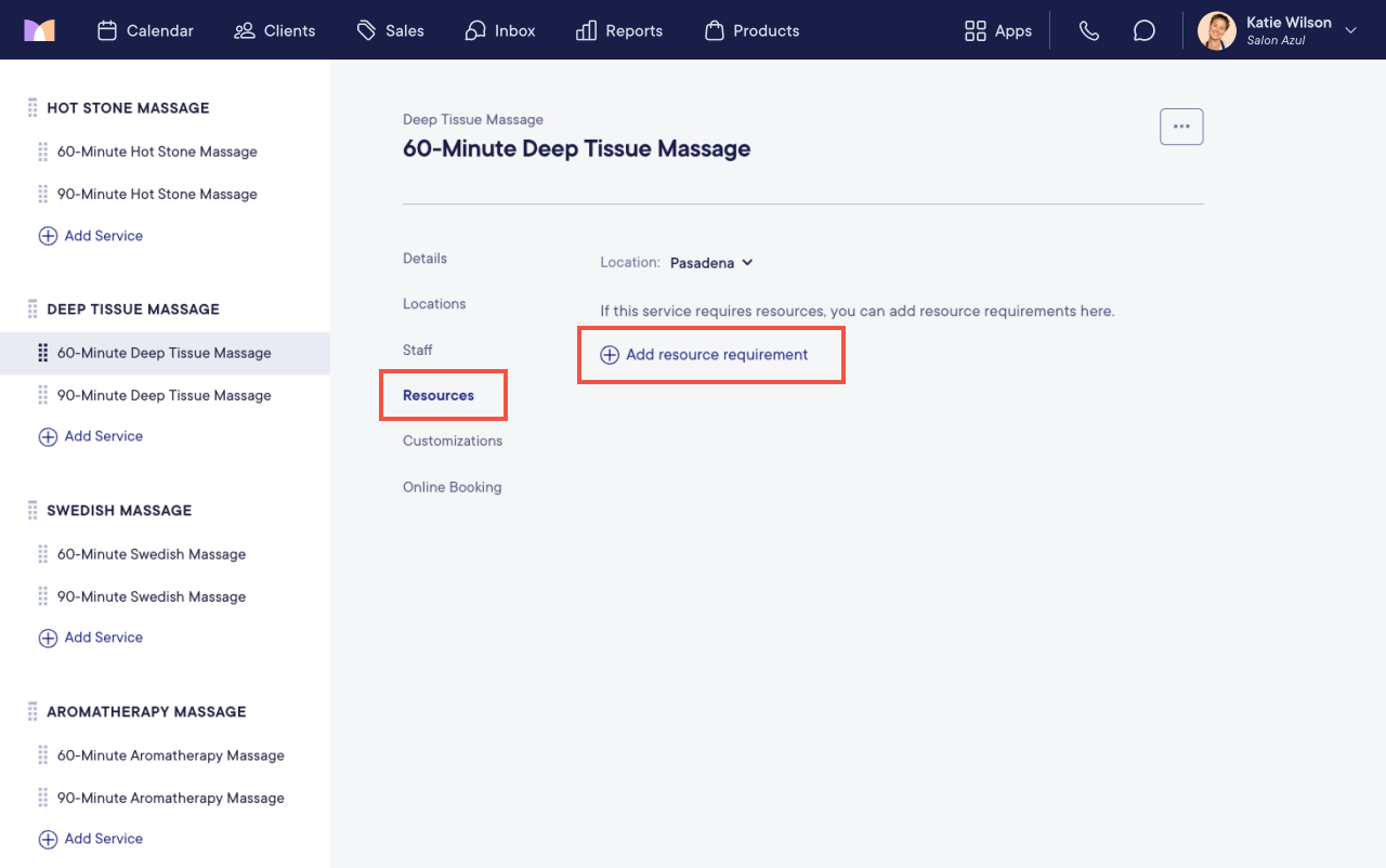 Once a resource requirement is added to a service, the system will automatically check during the booking process to see if the resource requirement can be fulfilled.