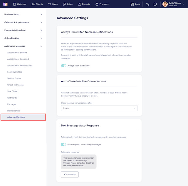 Advanced Settings: Automated Messages