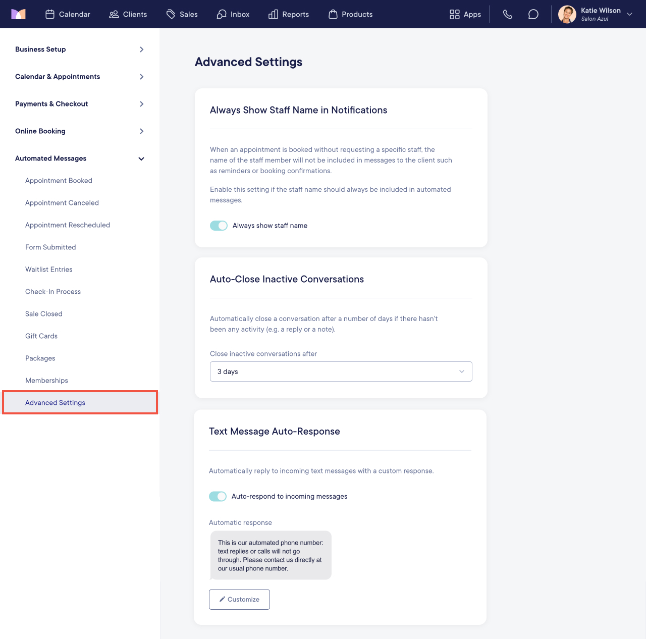 Advanced Settings: Automated Messages