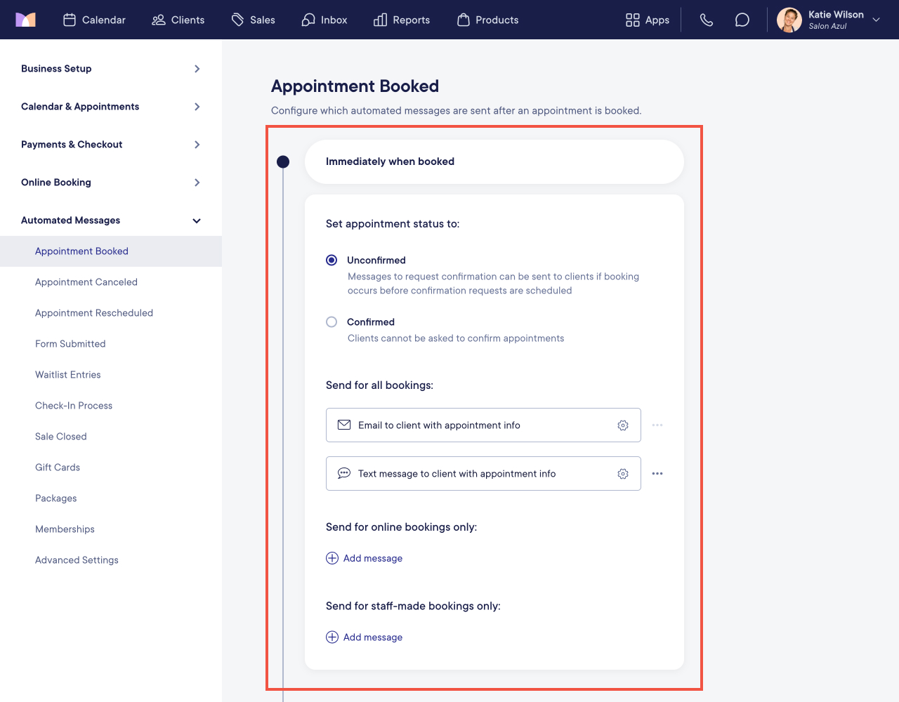 Automated Messages: Appointment Booked