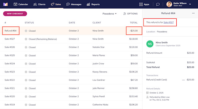 Link copiedViewing refunds in the Sales appLink copied