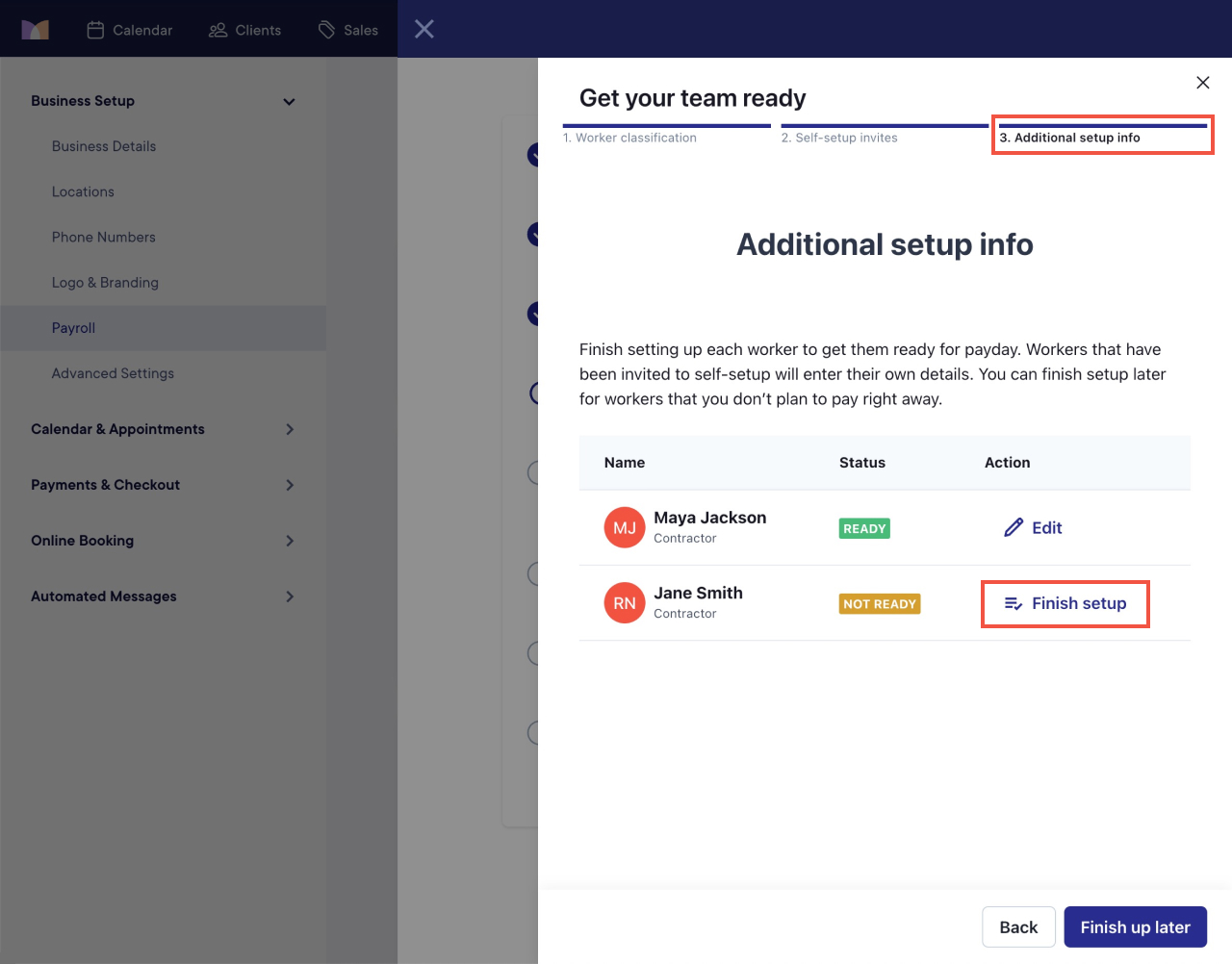 In the Get your team ready section, set up your workers for payroll. If you need help determining a worker’s classification, please consult an accountant.