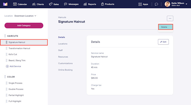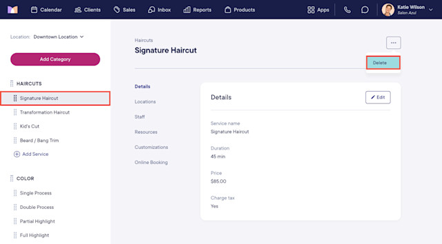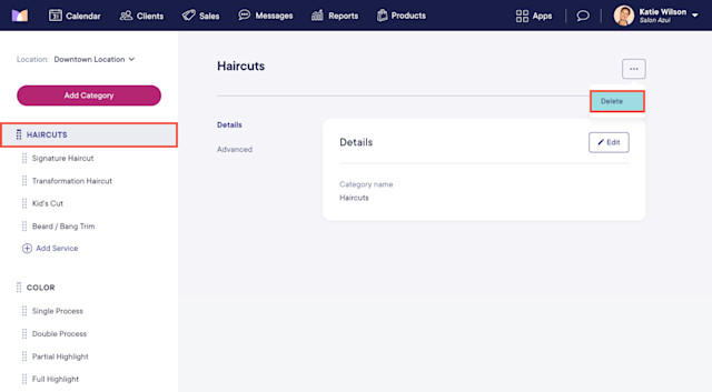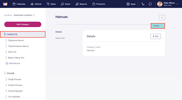 If you have multiple locations, a service category cannot be deleted until all services in the category are deleted for all locations.