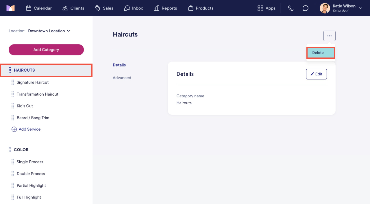 If you have multiple locations, a service category cannot be deleted until all services in the category are deleted for all locations.
