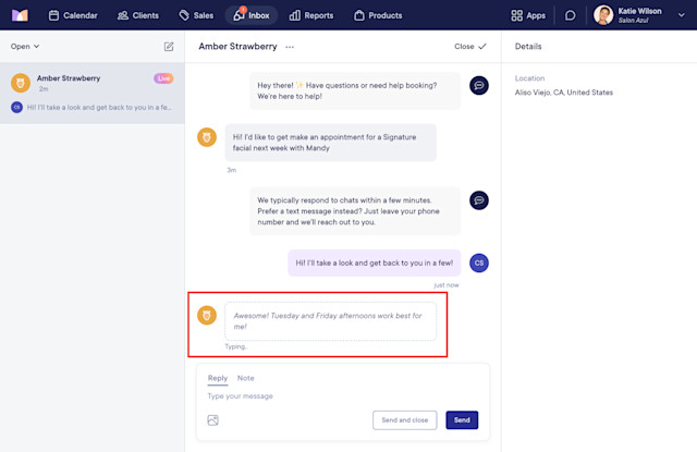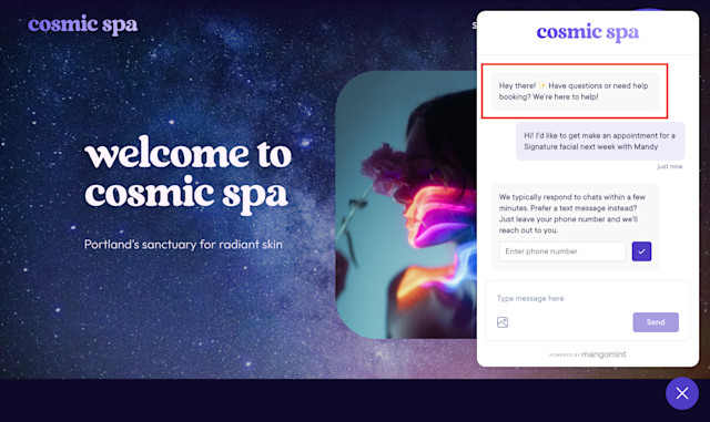 Once web chat is enabled, website visitors can select the chat icon in the lower-right corner of your website to send a chat message. Your chat icon and chat window will use the same logo and branding as your online booking. Learn more about receiving web chat messages.