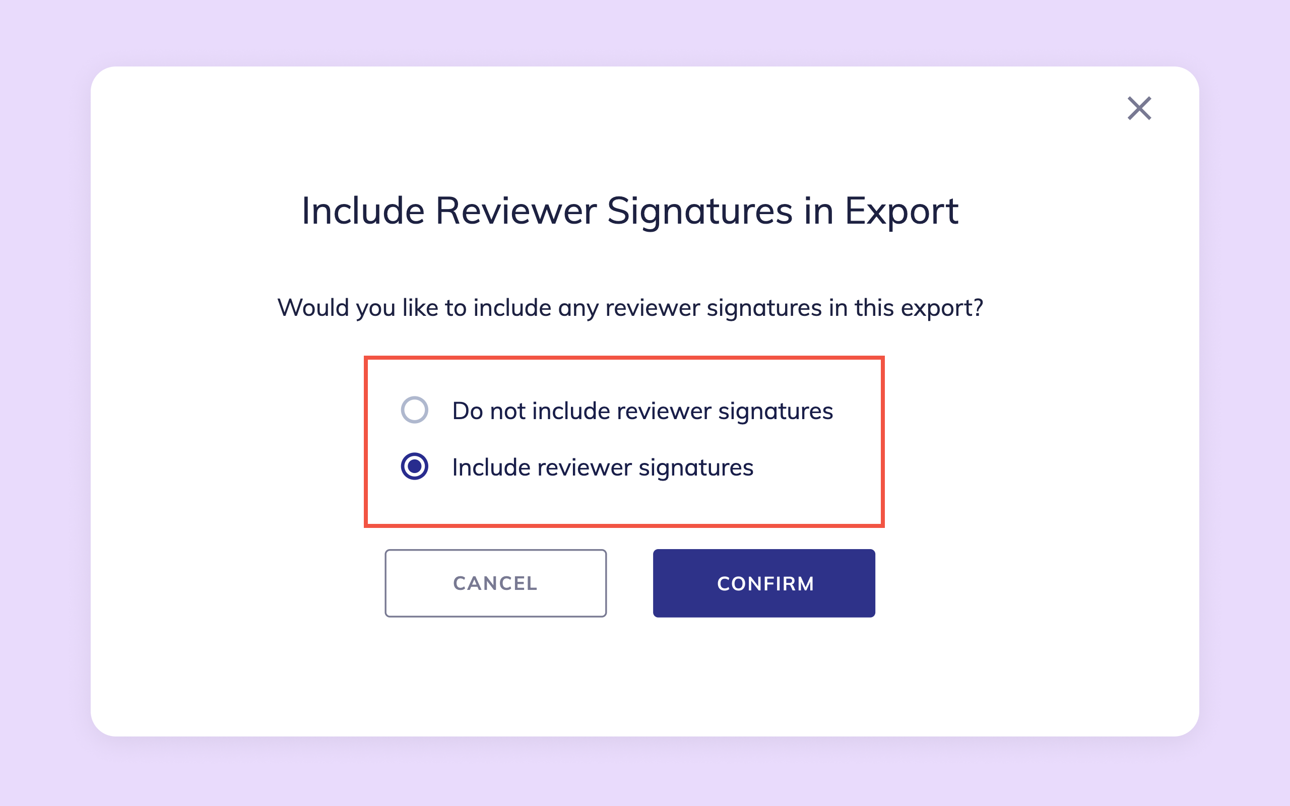 Specify whether to include reviewer signatures in the exported form submissions. For example, you can exclude signatures for enhanced privacy or include signatures for compliance purposes.