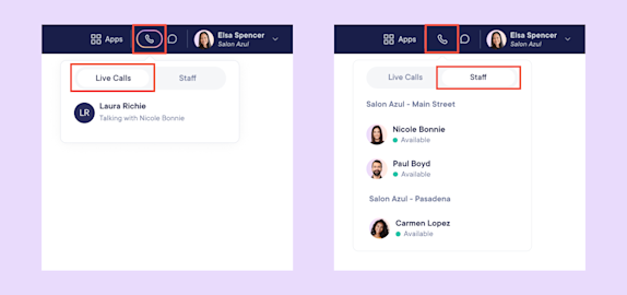Is there a way to see which staff members are on a phone call and who they are speaking with?