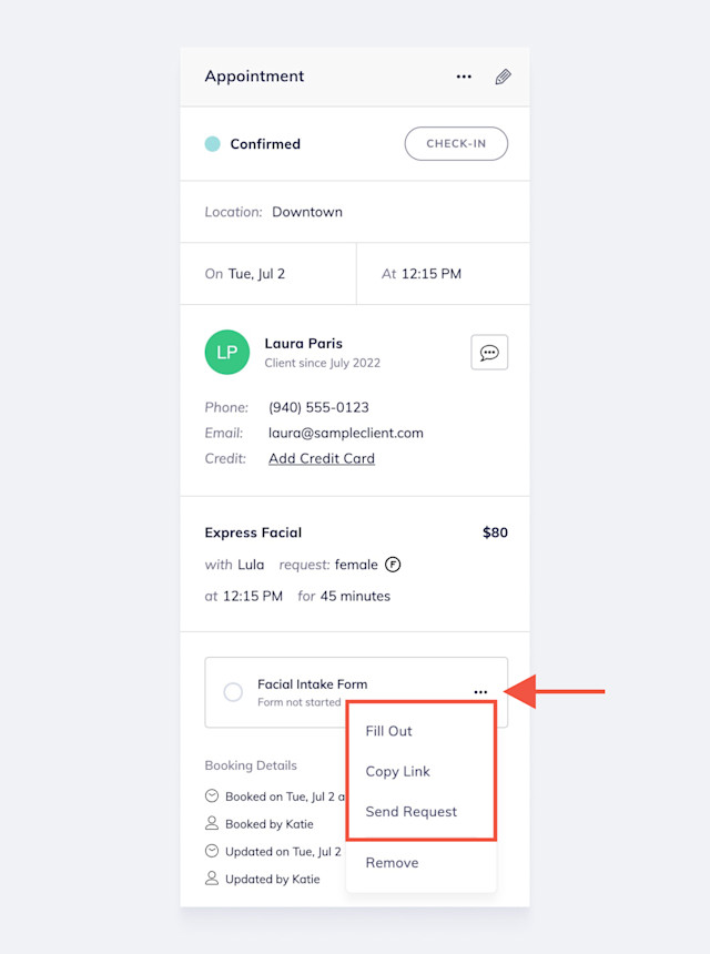 If a client arrives for their appointment but hasn't submitted their forms, they can fill out the forms in person.