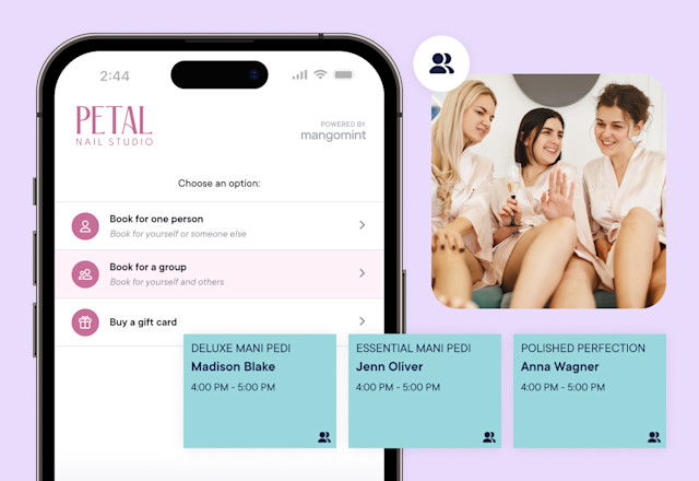 Book group appointments online: Clients can book group appointments online and select the same or different services and service customizations for each person in the group.