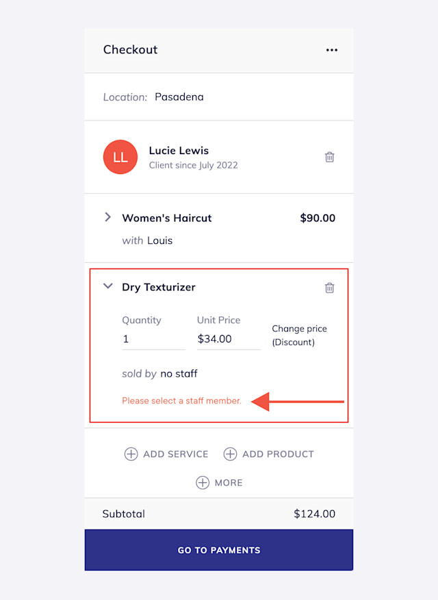 When enabled, a staff member must be assigned to the specified line items to complete a checkout. This setting is helpful if staff member compensation is commission-based or if you need to track which sales are completed by each staff member.