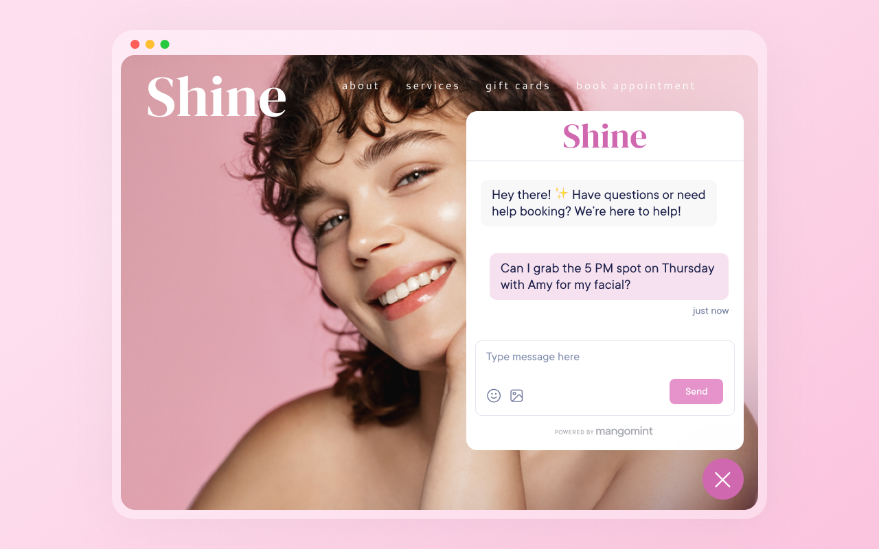 Manage chat messages through Mangomint: Set up notifications for new chat messages and reply directly through Mangomint.
