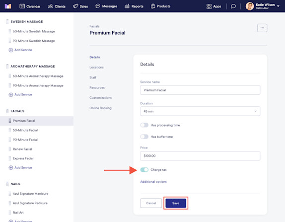 How do I enable or disable taxes on services?