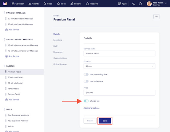 How do I enable or disable taxes on services?