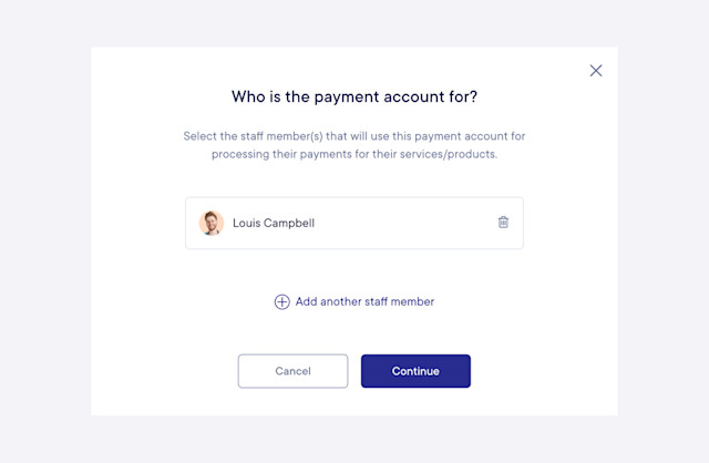 With this setup, staff members can have their own payment accounts and payment processors. Any checkout with the assigned staff member will automatically direct payment to that staff member's payment account.