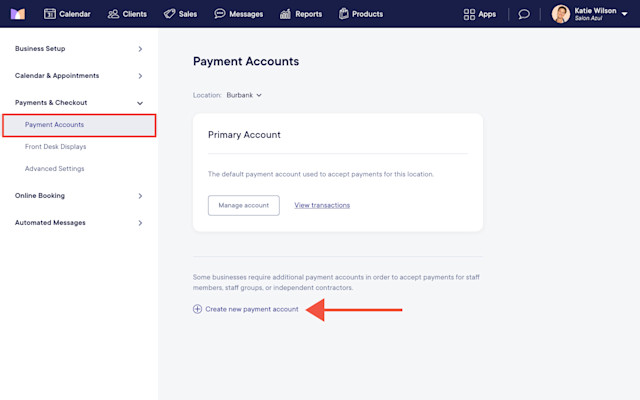 If you are an Admin user, you can create additional payment accounts for staff members. This is helpful for businesses that do not handle payments for independent contractors or booth renters.