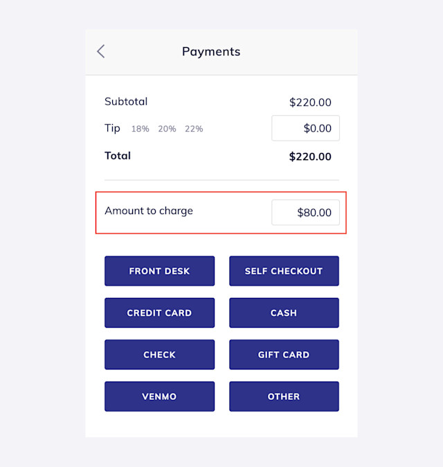 To collect a manual deposit for a client's appointment, begin the checkout for the appointment. This will create an open sale that will be closed once the appointment is completed.