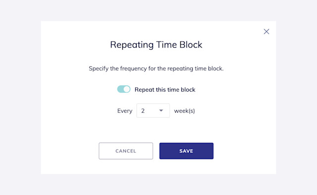 Enable the Repeat this time block toggle. Select a frequency and select Save.