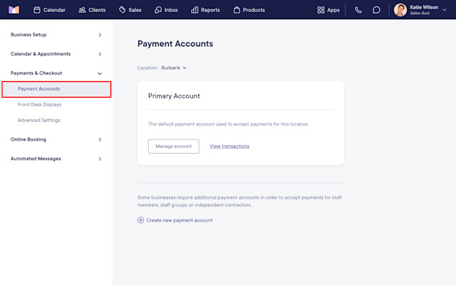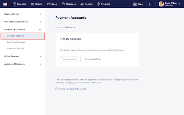 Additional payment accounts can be used to automatically direct payments to a payment account owned by a staff member. This is helpful for businesses that do not handle payments for independent contractors or booth renters.