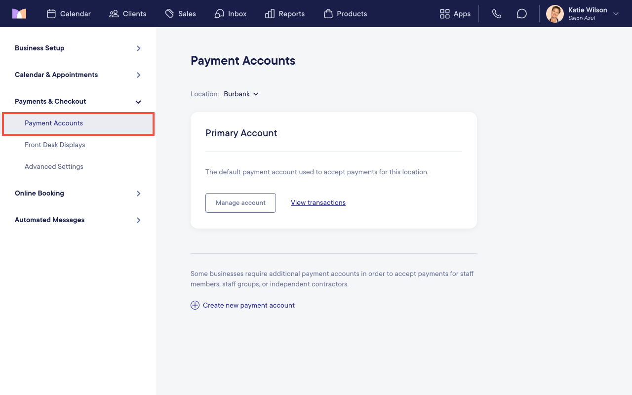 Additional payment accounts can be used to automatically direct payments to a payment account owned by a staff member. This is helpful for businesses that do not handle payments for independent contractors or booth renters.