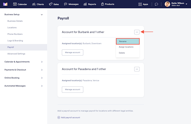 To rename a payroll account, select Rename from the "..." menu. This is helpful if you’d like to give each payroll account a custom name.