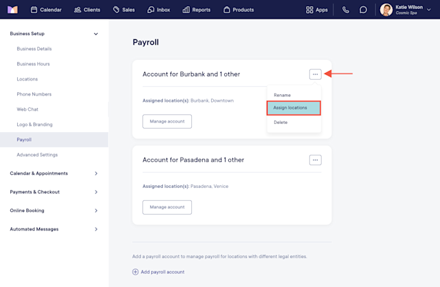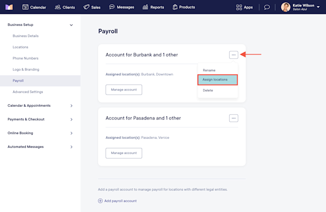 If you need to change the assigned locations for a payroll account, select Assign locations from the "..." menu.