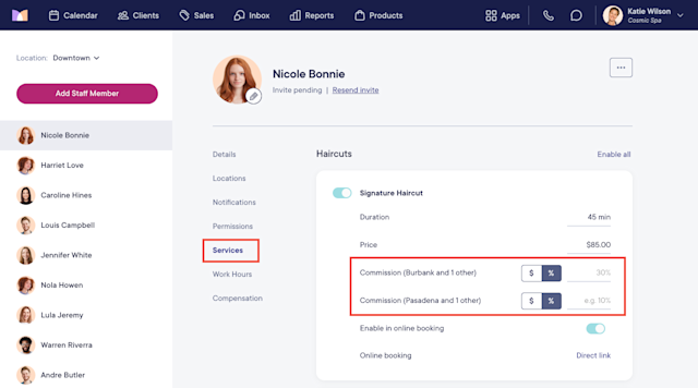 You can also select the Services tab in the Staff Members app to set commission overrides for specific payroll accounts if needed.