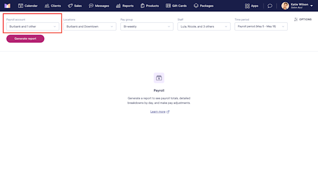 After setting up staff member compensation, you can run payroll for each payroll account.