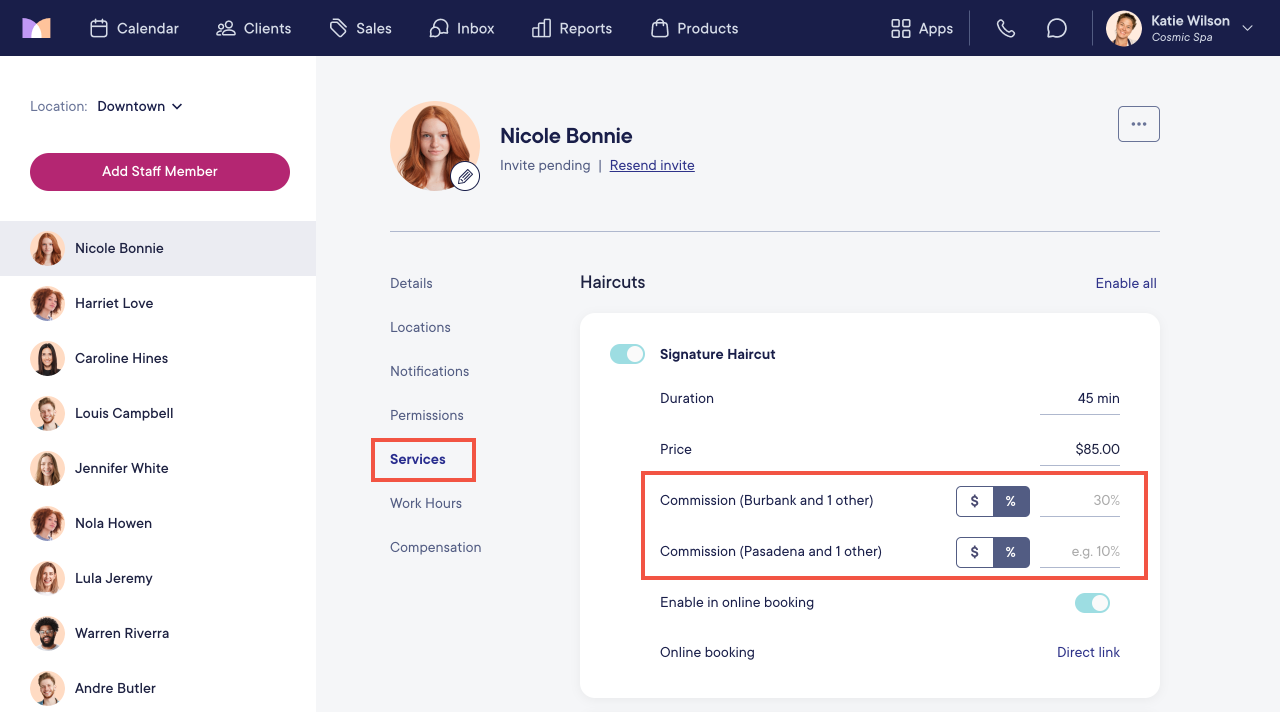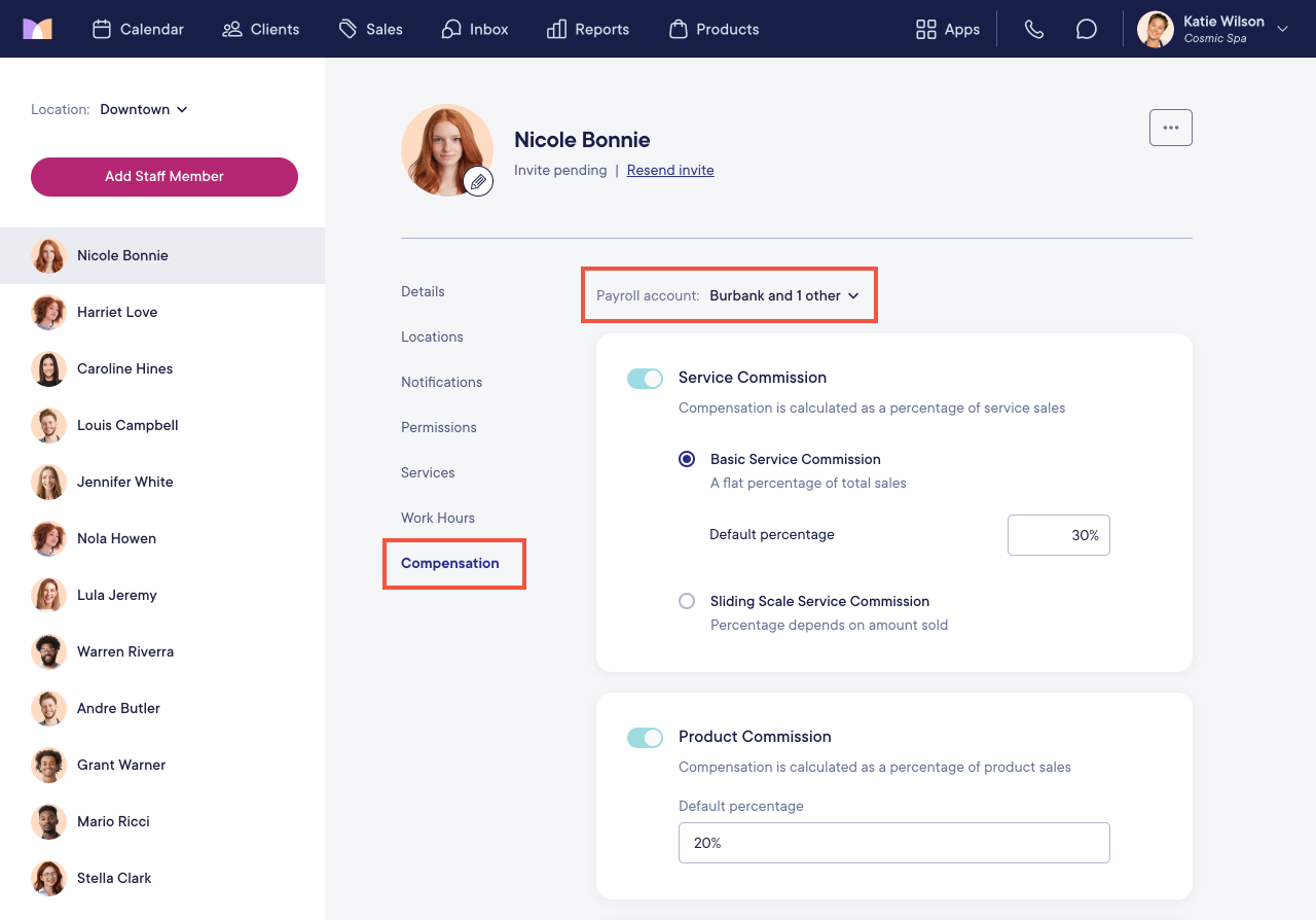 You can also select the Services tab in the Staff Members app to set commission overrides for specific payroll accounts if needed.