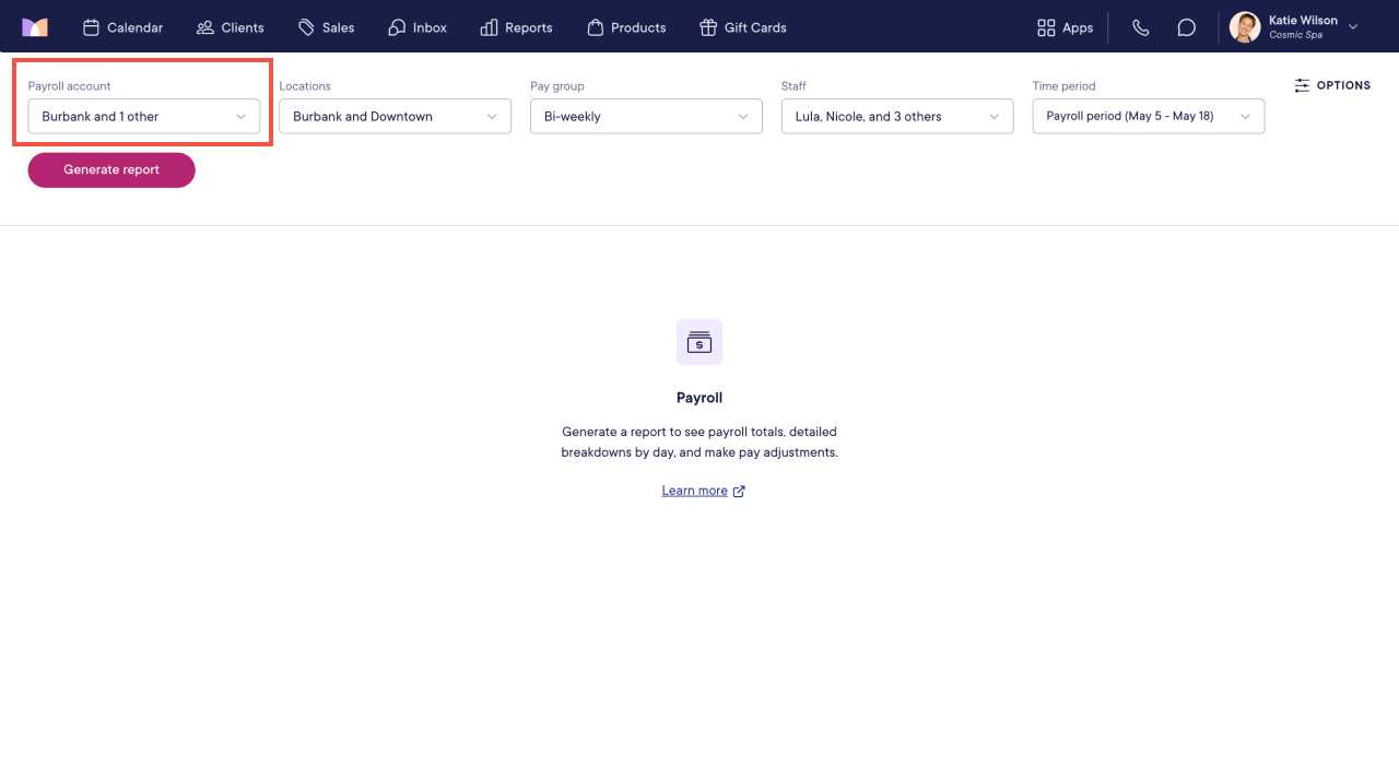 After setting up staff member compensation, you can run payroll for each payroll account.