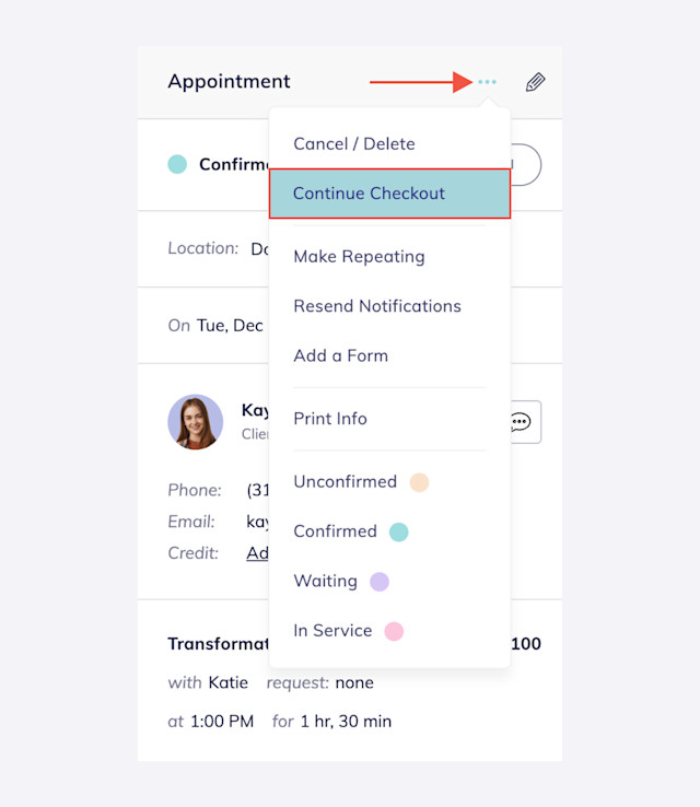 To refund a deposit to the client's account balance, select the appointment with the deposit.