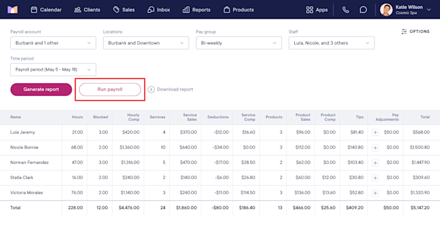 Before you run payroll, generate the Payroll report for the payroll period and make sure the report is accurate. The data from the report will be used to run payroll.