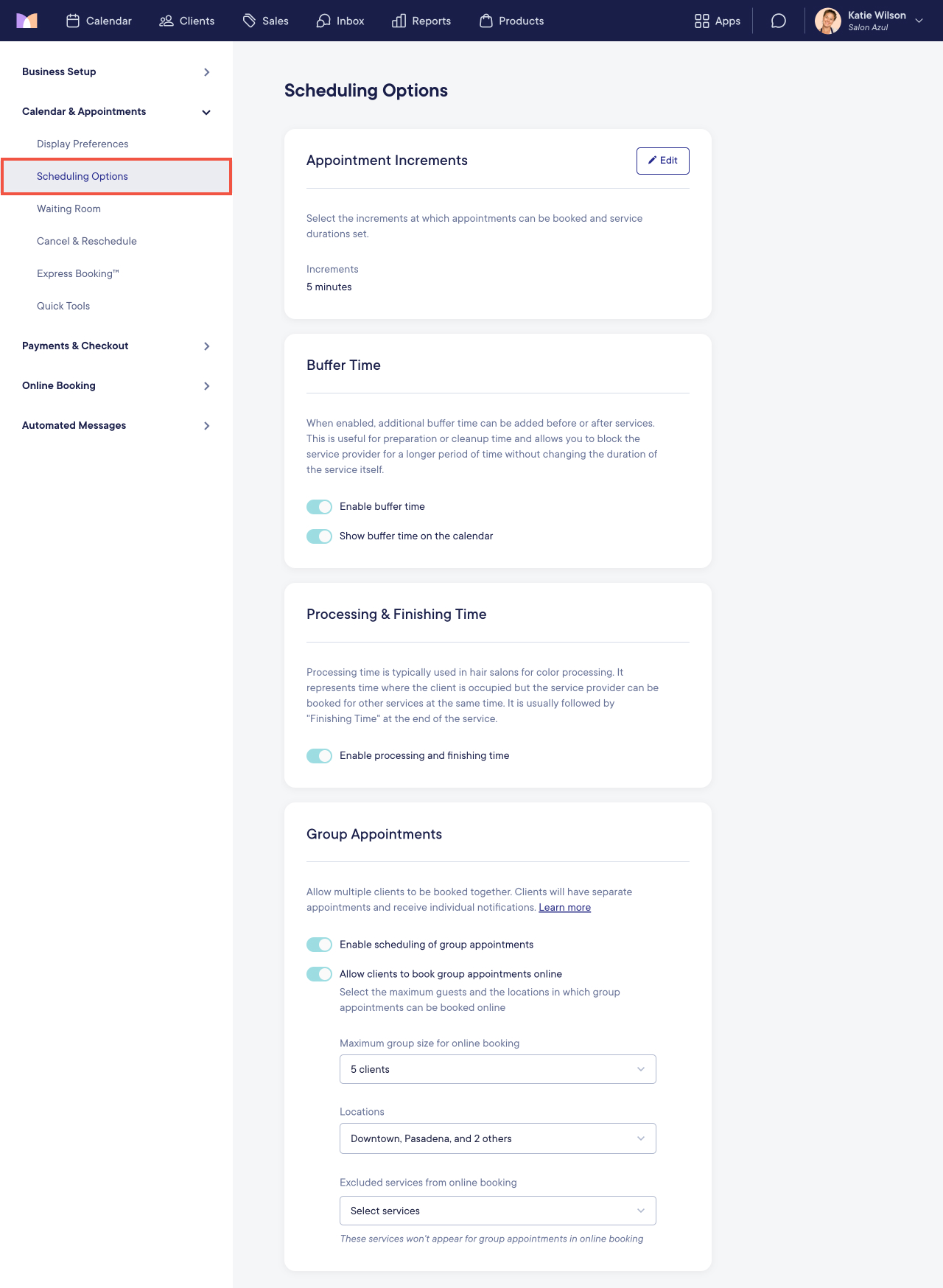 When enabled, multiple clients can be booked together. Clients will have separate appointments and receive individual notifications. Learn more about group booking.