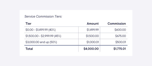 Here is an example of a sliding scale service commission: